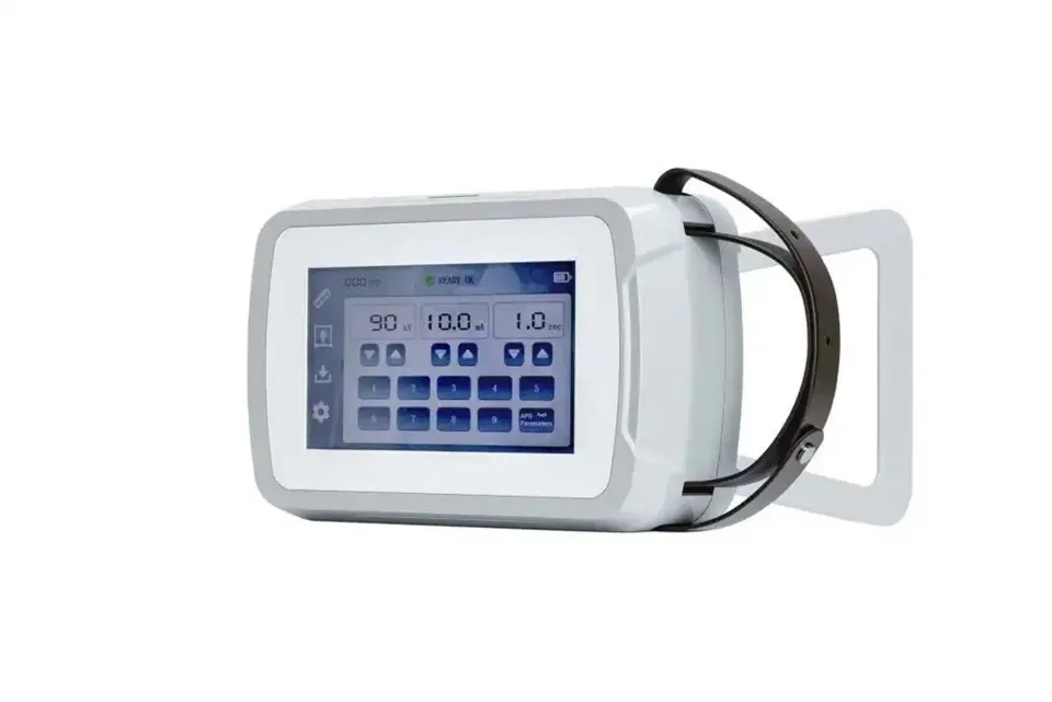 Equipado con un sistema de alimentación de 450 W, ofrece configuraciones ajustables de kV (40–90 kV) y mA (0,5–5 mA), junto con tiempos de exposición de 0,1 a 2 segundos, lo que brinda flexibilidad para obtener imágenes de diferentes partes del cuerpo y tamaños de pacientes. La máquina cuenta con un tamaño de punto focal pequeño de 0,8 para mejorar la claridad de la imagen e incluye una-batería integrada para un funcionamiento sin cables-. La seguridad está garantizada con una filtración total de 1,8 mm de Al, minimizando la exposición a la radiación.